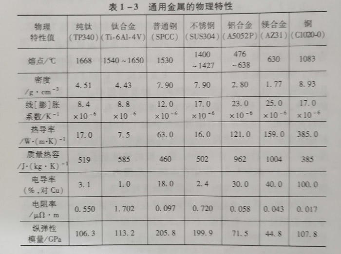 選定鈦時,除知曉上述力學性能之外,還有重要的一面,即需知道其物理性質特征。在表1-3中,將純鈦物理性質與其他通用金屬進行比較,值得注視的各項物理性質如下所述。