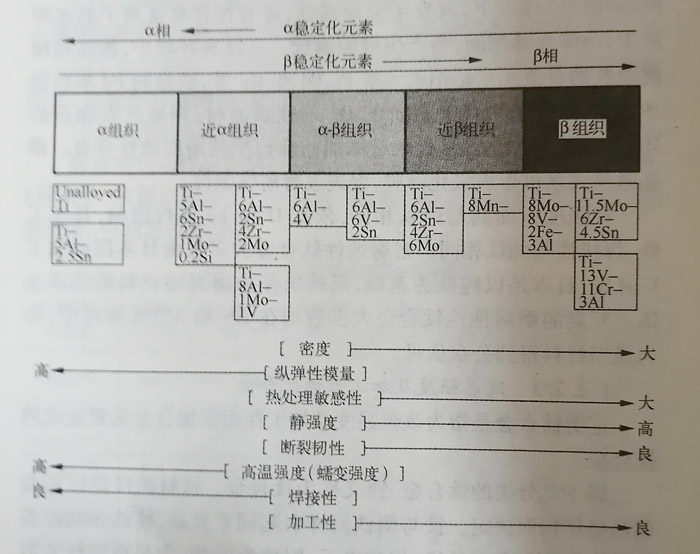 其結晶組織而分為:(1)a合金;(2)aB合金;(3)B合金。在圖1-5中示出添加元素對特性的影響,在每個合金分類中,一并表示出具有代表性的合金。其每個合金的代表性特征,以A1作為a穩定劑,它具備焊接性、延展性優越的高溫特性,而且在極低的溫度中也能呈現高度的延展性和韌性。在歐美作為鈦合金主流開發之一,作為有耐熱性要求的飛機發動機材料而大量開發a合金,最近在日本國內,作為汽車、兩輪車消聲器材料,重視具有高溫特性的a合金,在進行開發的同時進行標準化工作。
