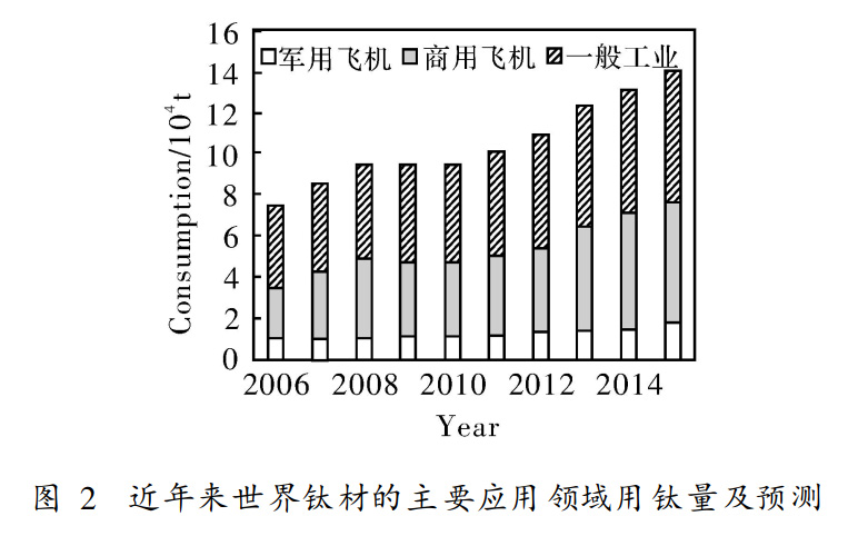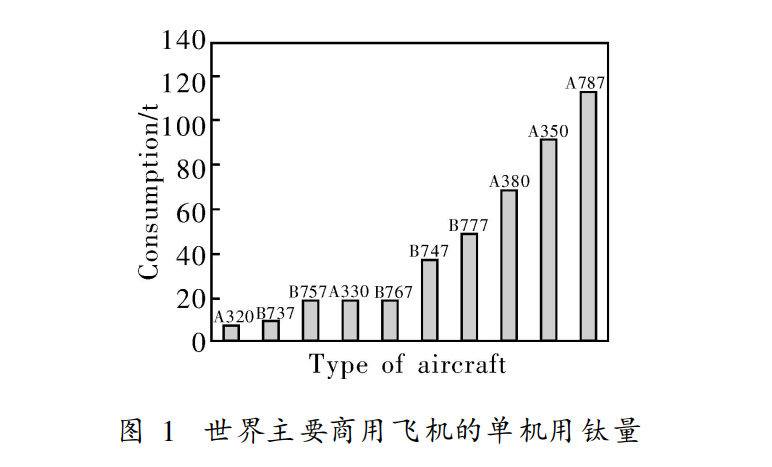 日本鈦加工材市場規(guī)模很大,但應(yīng)用于航空領(lǐng)域的鈦材不足3%[2l。中國航空鈦材用量占國內(nèi)鈦材總用量的11%~15%13.寶雞鈦業(yè)股份有限公司是中國最大的鈦及鈦合金材生產(chǎn)企業(yè),在國內(nèi)鈦材市場占有率高達(dá)40%以上,在國內(nèi)航空與軍工鈦材市場占有率達(dá)90%。該公司在波音公司和空客公司所占鈦材訂貨比例也逐年增加。