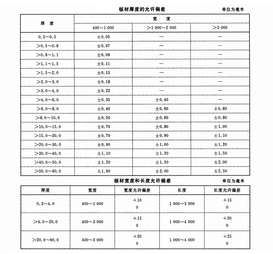 鈦合金板厚度、寬度、長度允許的偏差范圍