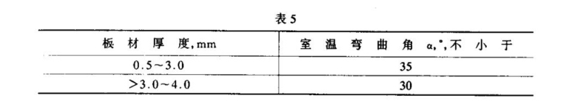 板材的室溫彎曲性能應符合表5的規定。彎曲后,試樣彎曲外表面應符合GB 232中8.2條的規定。
