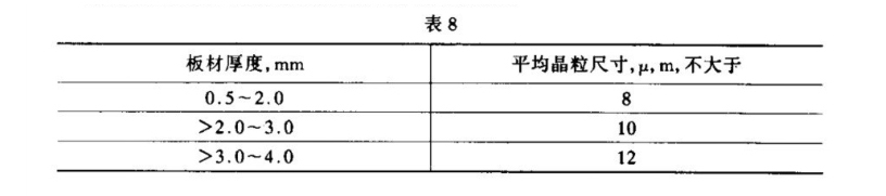 3.7.2 板材的橫向平均晶粒尺寸應符合表8的規定。
