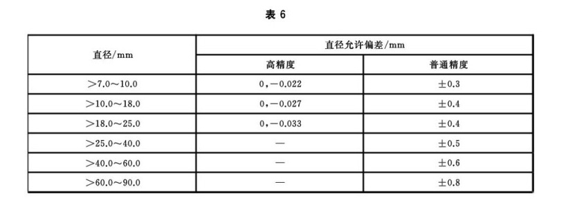 3.3.2.2.1 棒材的直徑允許偏差應(yīng)符合表6的規(guī)定。