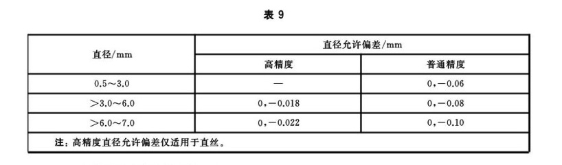 3.3.3.2.1 絲材直徑允許偏差應(yīng)符合表9的規(guī)定。
