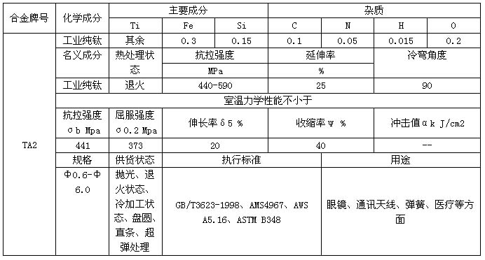 TA2含鈦(Ti)余量,鐵(Fe)≤0.30,碳(C)≤0.10,氮(N)≤0.05,氫(H)≤0.01[1]5,氧(O)≤0.25。