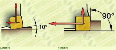插銑加工需選用小主偏角銑刀,與普通層銑刀具相比,這種刀具在插銑加工時可把大部分切削力引向銑刀軸向,產生的徑向力較小(見圖2)。即使選用較大懸伸銑刀進行加工,仍可保持切削過程的穩定,為深槽的高效加工提供了可能。