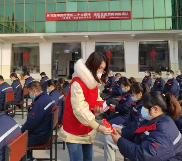 為進(jìn)一步弘揚(yáng)憲法精神,護(hù)航企業(yè)健康發(fā)展,12月6日,中共寶雞市委普法辦、寶雞市司法局、高新區(qū)司法局組成“送法小分隊(duì)”,走進(jìn)寶雞市聚鑫源新材料有限公司聯(lián)合開展“學(xué)習(xí)宣傳貫徹黨的二十大精神 推動(dòng)全面貫徹落實(shí)實(shí)施憲法”主題宣傳活動(dòng)。