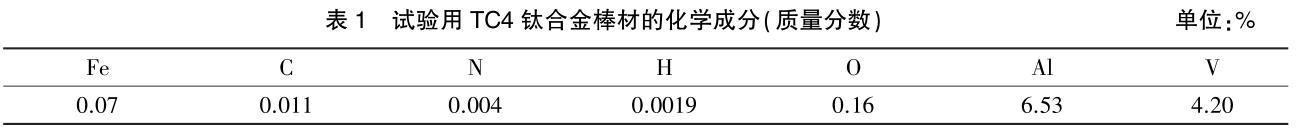 試驗用TC4鈦合金采用真空自耗電弧爐熔煉,并鍛造成φ120mm棒材,化學成分如表1所示。
