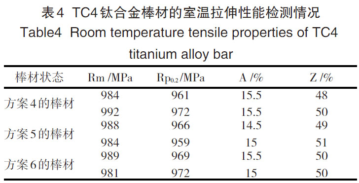 棒材室溫拉伸性能檢測(cè)結(jié)果如表4所示,采用方案4、5、6 矯直的棒材的室溫拉伸性能無明顯差異。