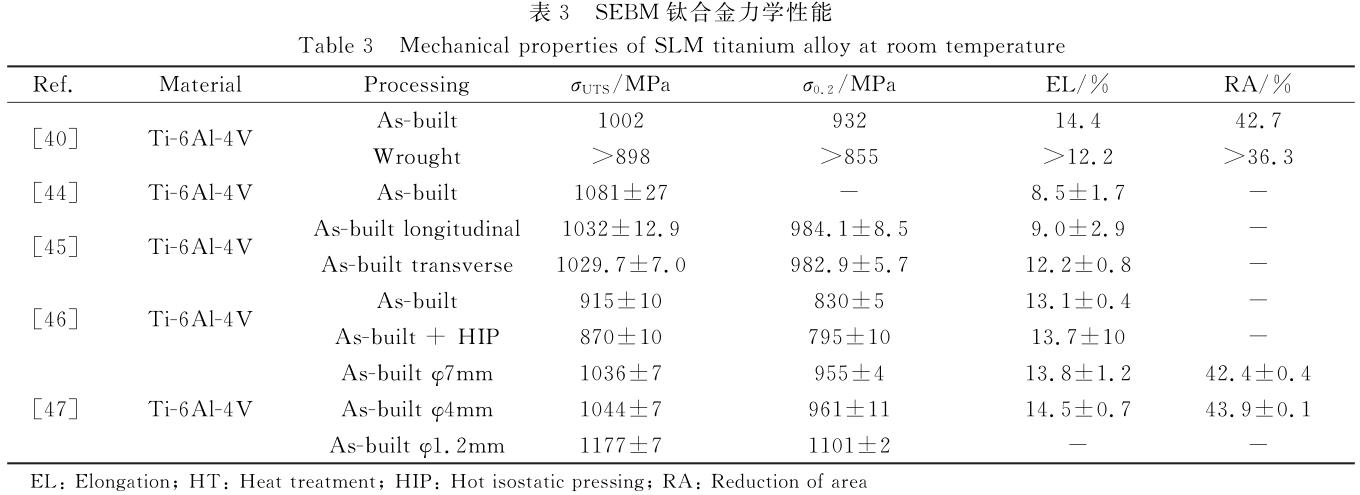 46FacchiniL,MagaliniE,RobottiP,etal.Microstructureandme-chanicalpropertiesofTi-6Al-4Vproducedbyelectronbeammeltingofpre-alloyedpowders[J].RapidPrototypingJ,2009,15(3):171