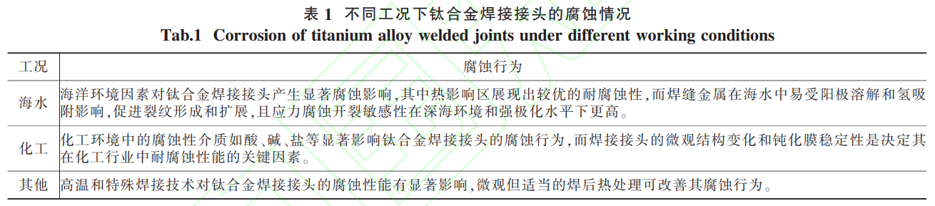 2、不同工況下鈦合金焊接接頭的腐蝕行為